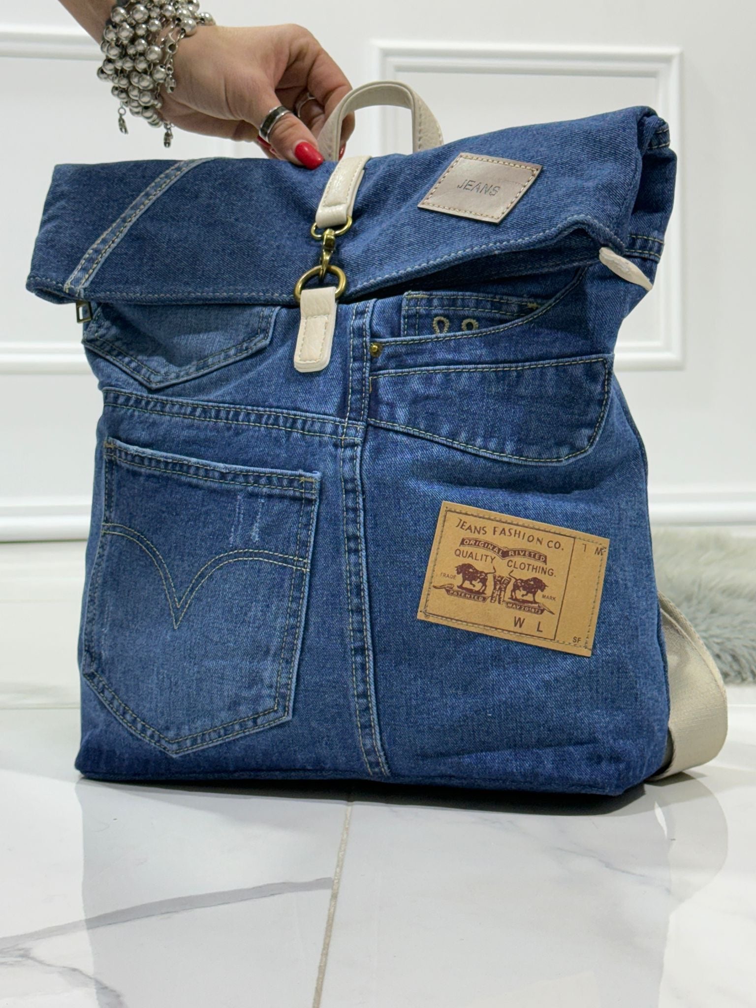 Rudy Denim/Beige - Zaino