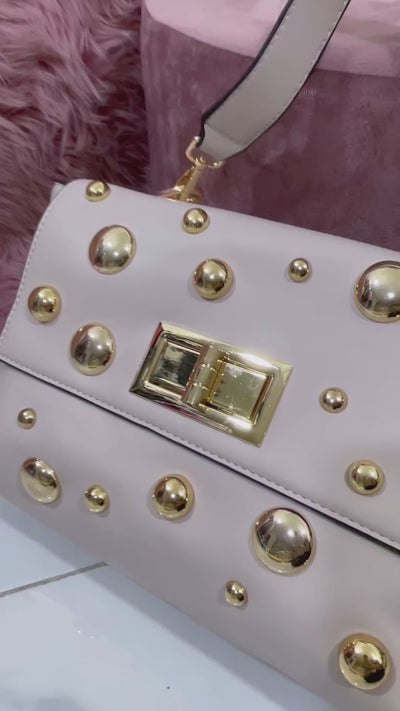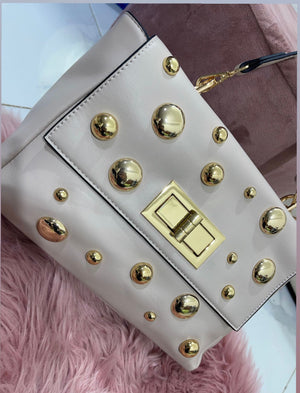 Questa borsa in ecopelle con borchie dorate è perfetta per chi cerca uno stile elegante e sofisticato. Offre un look moderno e alla moda. Ideale per ogni occasione, ti accompagnerà con stile in ogni tua avventura.