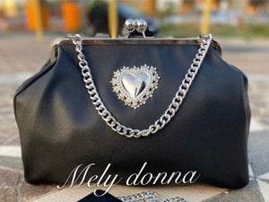 Borsa Nera Cuore e Catena Argento