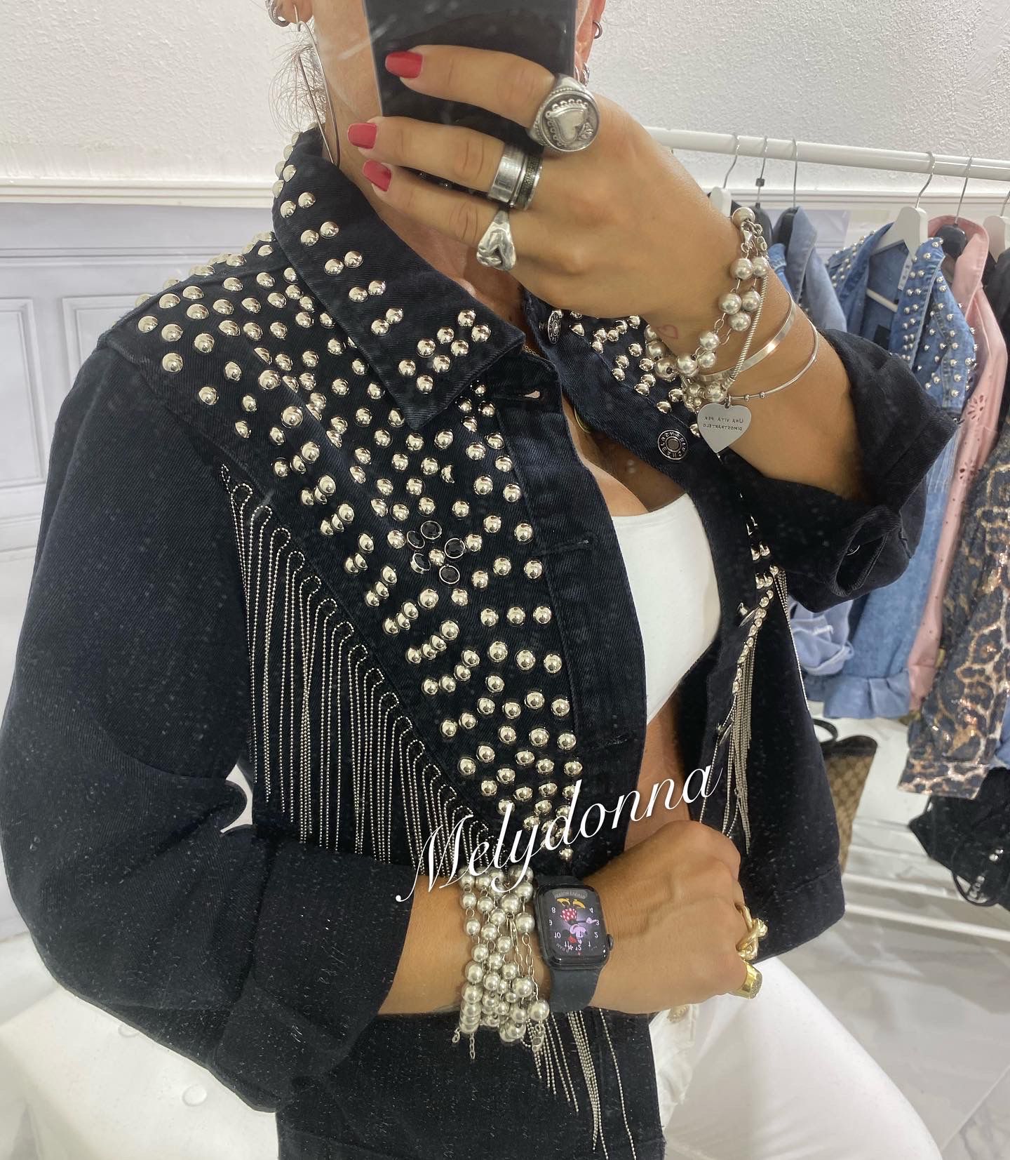 Giacca Jeans Nero Loren con Borchie