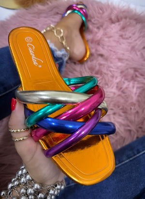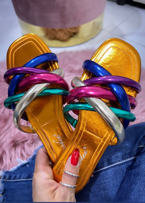 Con Panarea Oro - Ciabatta, aggiungi un tocco di lusso ai tuoi outfit casual. La pianta color oro e gli inserti multicolor rendono questa ciabatta da passeggio unica e alla moda. Goditi lo stile mentre cammini con facilità.