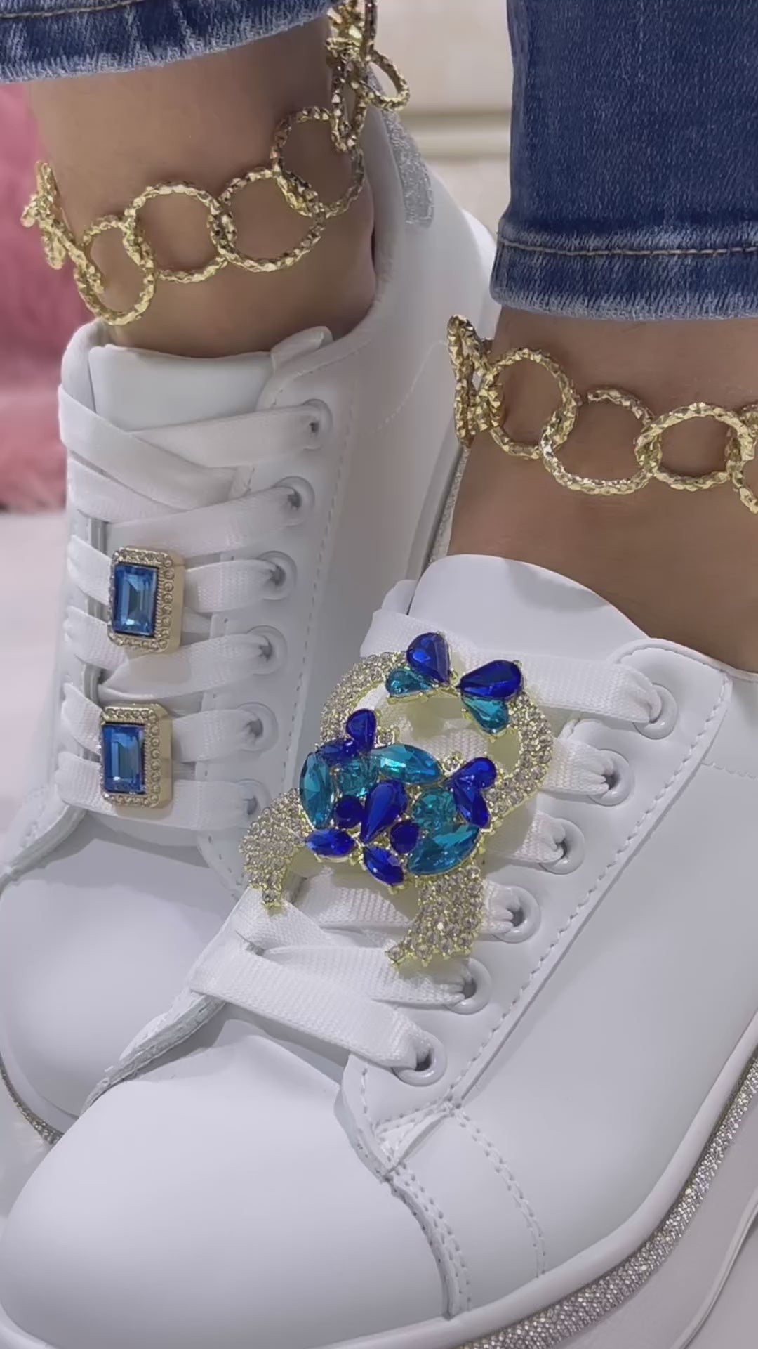 Le sneakers Barcellona sono perfette per chi cerca un look brillante. Con inserti argento e pietra blu, ti faranno risplendere!