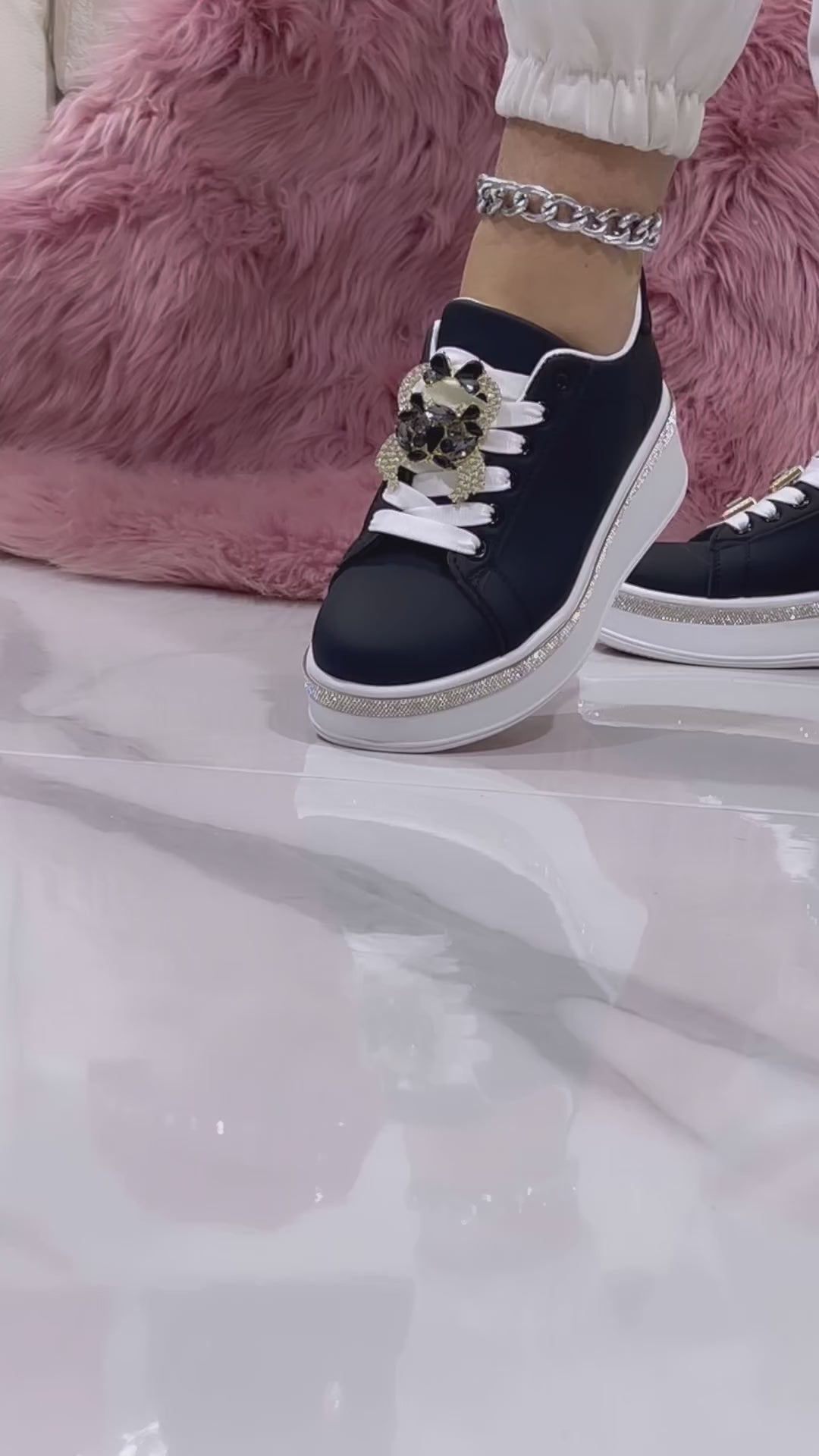 Le sneakers Barcellona sono perfette per chi cerca un look brillante. Con inserti e pietra argenti, ti faranno risplendere!
