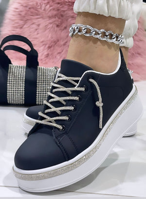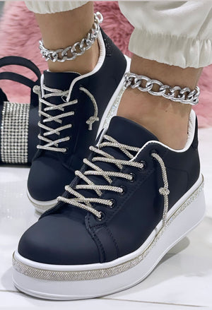 Sneakers Barcellona con inserti e lacci brillantinati e suola alta in gomma. L'elegante mix di materiali dona ulteriore raffinatezza e la suola alta garantisce un comodo supporto per ogni passo. Lasciati conquistare dall'unicità di questi sneakers.