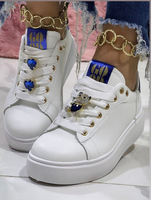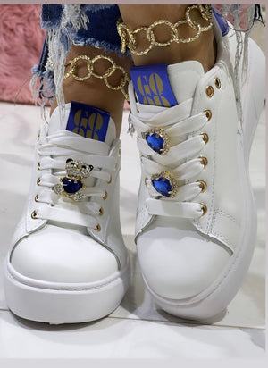 Sneakers Bianche Inserto Blue e Spilla Orsacchiotto