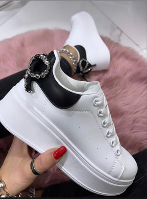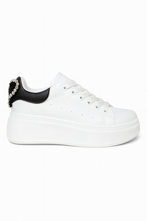 Sneakers Montreal Bianche Inserto Nero sono le classiche scarpe da ginnastica in ecopelle con suola alta e inserti colorati. Perfette per uno stile sportivo ed elegante, comode e resistenti. Aggiungi un tocco di moda al tuo look con queste sneakers alla moda.