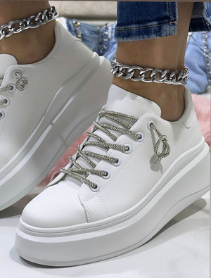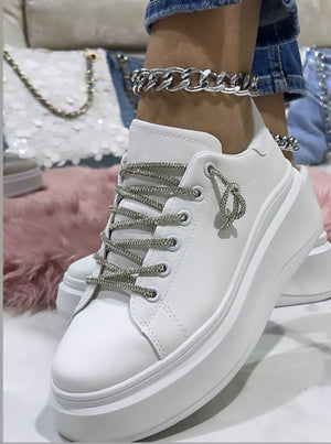Le sneakers Ibiza bianche sono realizzate in ecopelle e presentano stringhe brillantinate argentate per un tocco di eleganza. Perfette per un look casual chic, garantendo comodità e stile in ogni passo. Un must-have per chi ama distinguersi con classe.