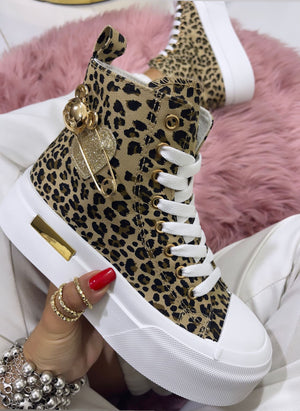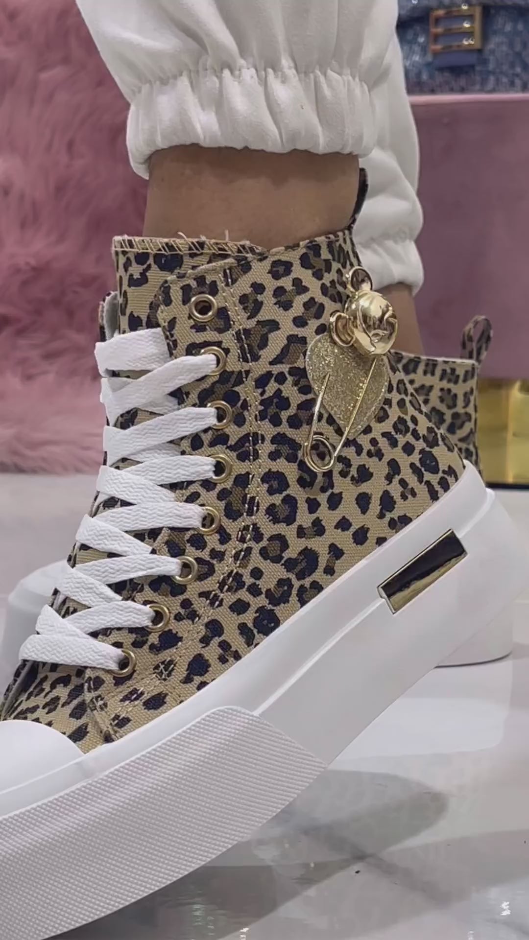 Le nuove Sneakers Passione sono realizzate in tessuto con elegante spilla oro e suola in gomma da 4,5 cm. Garantiscono un mix perfetto di stile e comfort per ogni occasione. Ordina le tue sneakers ora e aggiungi un tocco di glamour ai tuoi outfit di tutti i giorni!