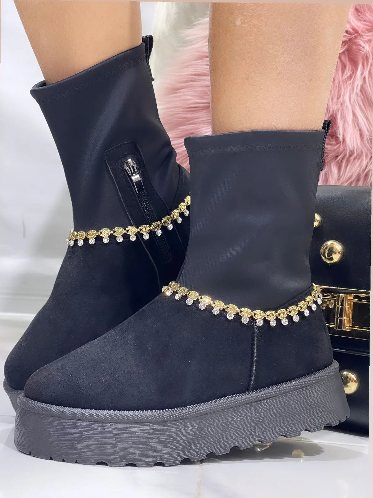 Stivaletto Jasmine Nero inserto oro